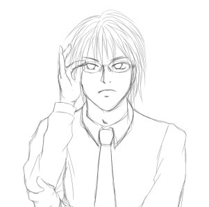 ・練習のために写真からトレースで眼鏡のポーズを描いてたら、無意識でホリケンが忍足(手塚にも見える)になって吃驚 →